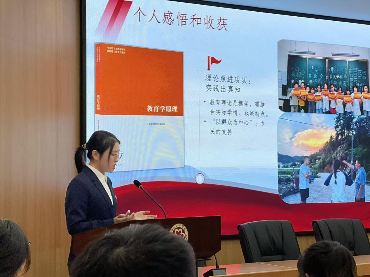 活动在一段实践合集视频的播放中正式启幕。短片里,学生们深入乡村、服务基层的实践场景逐一展现,生动诠释了“知行合一”的实践精神,引发了现场师生的强烈共鸣。在实践成果展示环节,学生党员借助图文、视频等形式,分享服务基层的初心体悟,其中既有与群众相处时的温暖笑颜,也有与老党员交流时的感动启迪,充分展现了青年党员在实践中锤炼党性、增长才干的成长轨迹,也展现了青年党员的责任担当与人文情怀,其扎实的实践成果与感人的事迹打动现场师生。
