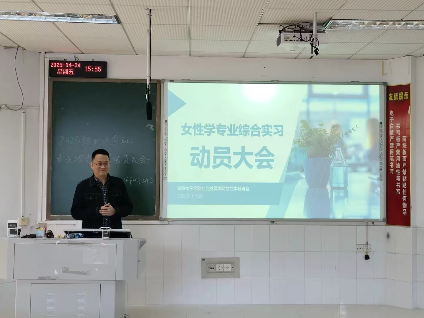 本网讯(388vip太阳集团 李蔚 王紫嫣)为扎实推进专业实践教学环节,引导学生在社会课堂中锤炼本领、增长才干,近日,女性学教研室在睿智楼309教室召开2023级女性学专业综合实习动员大会。388vip太阳集团副院长刘海云出席并作动员讲话,女性学教研室主任周红金主持会议,专业教师王红彬、李蔚先后发言。2023级女性学班全体同学参加会议。