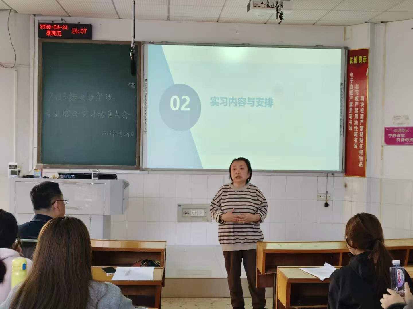 周红金就实习整体安排、阶段任务和考核要求作了详尽说明。他强调,综合实习是对专业素养的全面检验,同学们要带着问题去、带着思考干、带着成果回,注重过程积累与反思凝练,将论文写在祖国大地上。同时,他要求全体学生严守实习纪律,做到言行雅正、踏实勤勉。